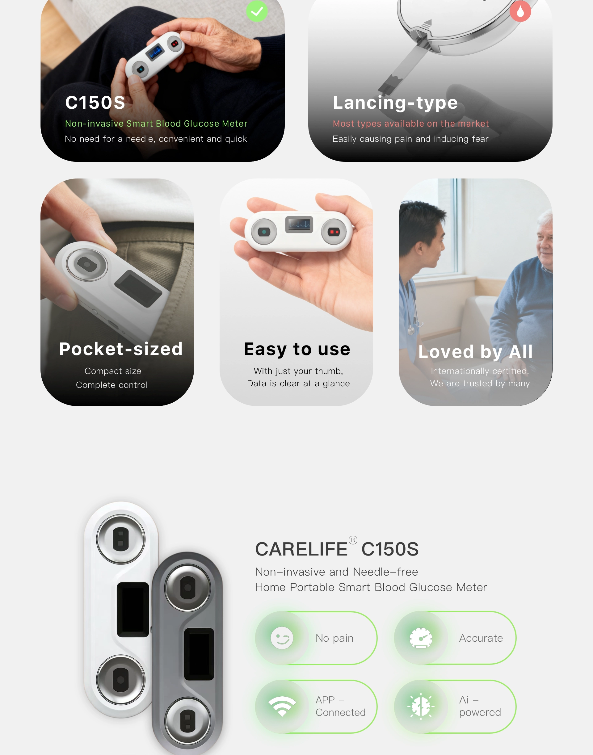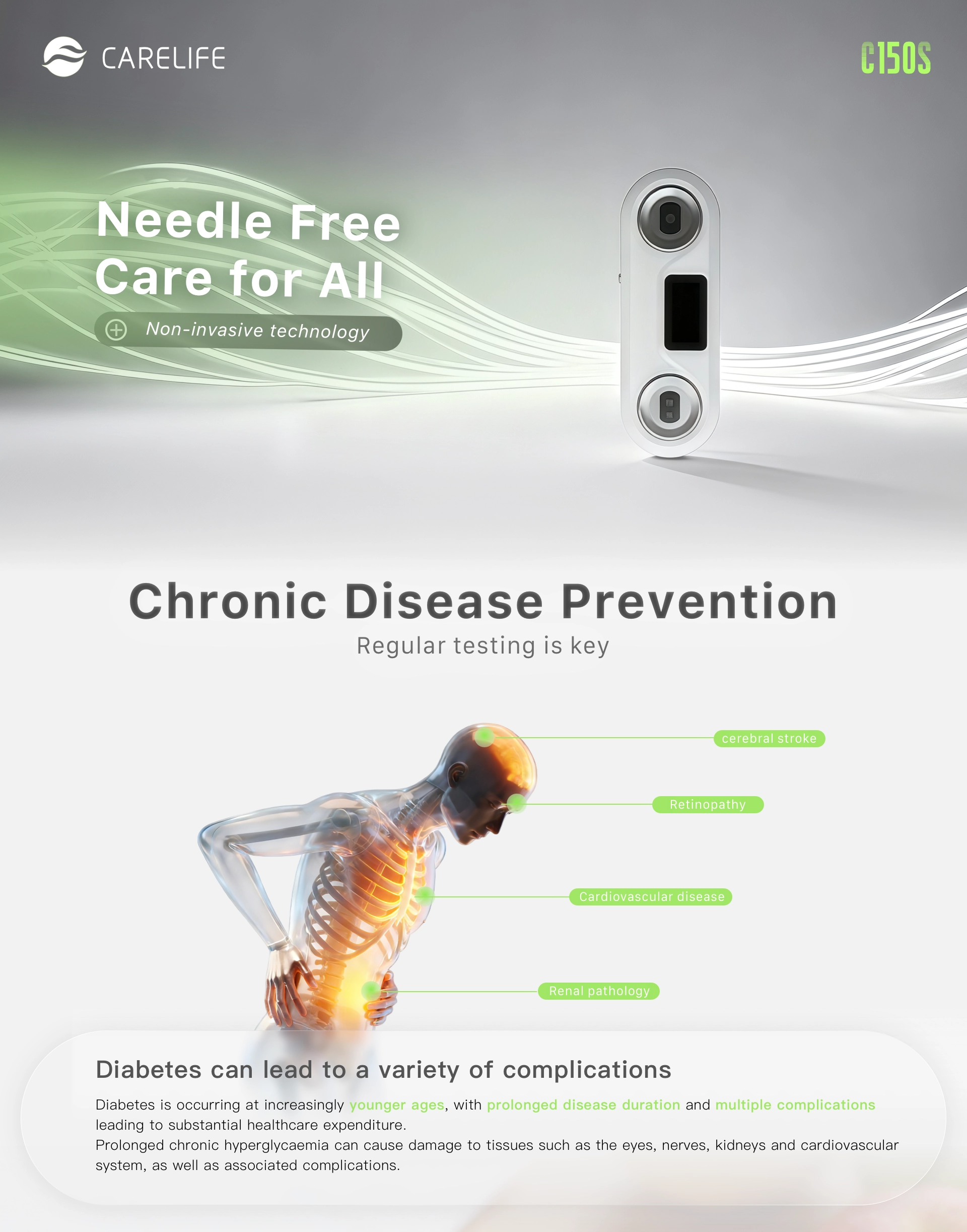CareLife C150S Non-invasive and Needle-free Home Portable Smart Blood Glucose Meter